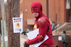Im normalen Leben ist Frank das, was man landläufig als arme Sau bezeichnen würde: ein unter Depressionen und Neurosen leidender Schnellimbiss-Koch. Als seine Frau unter den Einfluss eines besonders fiesen Kleinverbrechers gerät und Frank verlässt, verschwindet auch das letzte Regulativ aus dem Leben des Verlierers. Fortan zwängt er sich allabendlich in sein mühselig zusammengeflicktes Kostüm - nicht unbedingt um Gutes zu tun und zu den Gewinnern zu gehören, sondern um endlich mal auf die Kacke zu hauen: Als Superheld „Der Blutrote Blitz“ geht er unverdrossen seiner Arbeit nach. Beistand leistet ihm dabei bereitwilligst die nicht minder verstörte, nymphomane Comic-Verkäuferin Libby als sein Sidekick „Blitzie“.